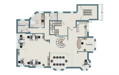 Komplexe Originalgrundrisse werden einfacher und attraktiver nachgezeichnet. Sie haben die Möglichkeit einen gewerblichen Grundriss in verschiedenen Nutzungsvarianten zu präsentieren, ob z.B. als Bürofläche oder Praxisräume.