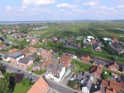 Eigentumswohnung im 4-Parteien-Haus in Steinkirchen. Im Hintergrund die Elbe und das Alte Land in Richtung Hamburg.