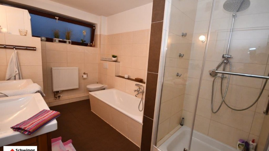 Die Eigentumswohnung verfügt weiterhin über drei Schlafzimmer und ein Gäste-WC. Alle Räume sind mit einer Fußbodenheizung ausgestattet und wurden mit hochwertigen Fliesen und teilweise mit Echtholzparkett ausgelegt. Eine moderne Gasheizungsanlage der Marke „Buderus“ versorgt die gesamte Immobilie mit Warmwasser und angenehme Heizwärme. Die Anlage wurde im Jahre 2014 installiert – alle Verbrauchswerte ( Strom, Wasser, Heizung ) sind über Mengenzähler exakt pro Wohneinheit ablesbar.