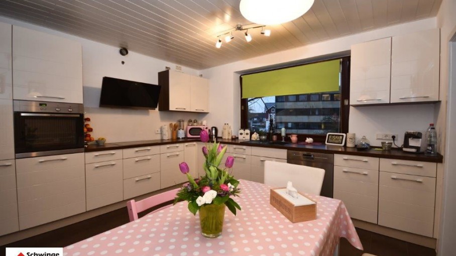 Es erwarten Sie großzügig geschnittene Räume, vom Kaminzimmer bis zur Küche und dem Vollbad. Der außergewöhnliche Grundriss, gibt einem das Gefühl, als bewohne man ein eigenes Einfamilienhaus. Der geräumige Wohn-/ Esszimmerbereich ( 40 m² und 21 m² ) mit Kamin hat einen wunderschönen Blick in den Garten. Die angrenzende Küche ist prädestiniert für eine gesellige Zeit mit Familie oder Freunden. Hochwertige Einbauten mit Elektrogeräten der Marke NEFF und Siemens sind im Kaufpreis enthalten. Die Küche ist im L-Form eingebaut worden und bietet viel Abstellfläche für alle Hobbyköche.